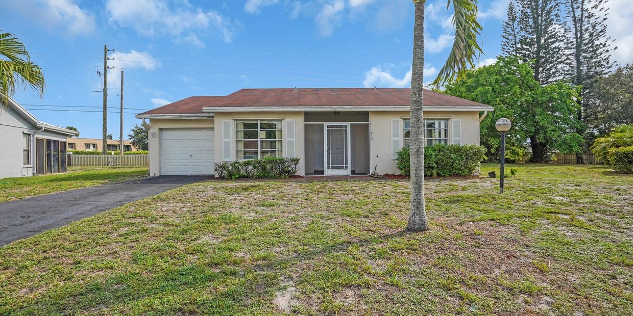 Welcome to this spacious 2-bedroom, 2-bathroom single-family home in the desirable 55+ Lucerne Homes East community in Greenacres. Offering 1,868 square feet of comfortable living space, this residence features a bright and functional layout, a screened-in patio for year-round enjoyment, and a 1-car garage with washer/dryer hookups for convenient parking and storage. The community offers great amenities such as access to a community clubhouse and pool. The home also sits on a nice 0.23 acre lot. Enjoy the ease of nearby access to highways, shopping centers, dining options, recreational parks, and Palm Beach International Airport. Come see this great opportunity with lots of potential. Schedule your showing today!