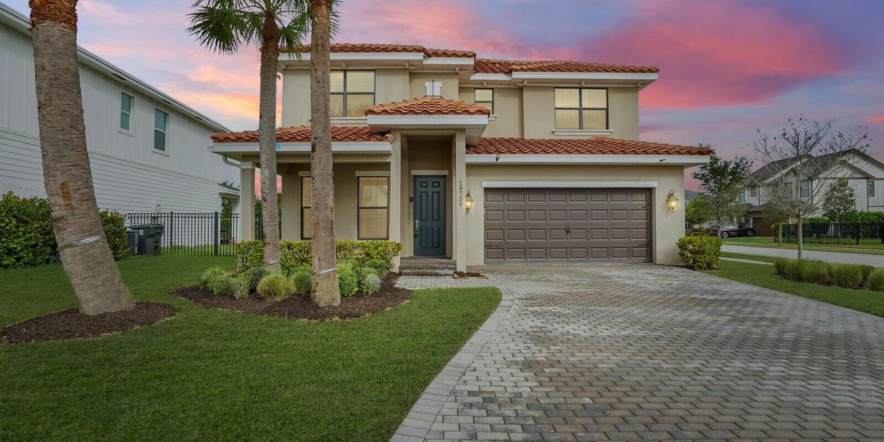 Beautiful 3-bedroom, 2.5-bathroom Mediterranean-style home now available in the desirable Evergrene community of Palm Beach Gardens. This 2-story single-family home offers 1,910 sq ft of living space with a 2-car garage, a nice back patio, and backyard that borders a green space for added privacy. Features include newer wood floors upstairs in all bedrooms, tile floors downstairs and a spacious layout perfect for modern living. Prime central location close to top schools, shopping, dining and I-95. Residents of Evergrene enjoy access to great community amenities such as a resort style pool, pickleball, basketball, manned gate, security patrol, fitness center, and more. Don't miss out on this phenomenal opportunity. Call and schedule your showing today to see all this home has to offer.